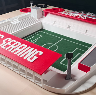 Suite à mon projet précédent consacré au Standard de Liège, j'ai voulu développer un autre concept similaire, mais avec un club différent. Le stade choisi pour cette création est le Stade du Pairay à Seraing. J'ai travaillé dur pour adapter ma méthode de modélisation à ce nouveau stade, en maintenant une certaine simplicité pour faciliter le jeu et l'assemblage.